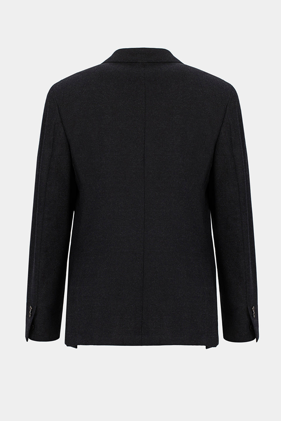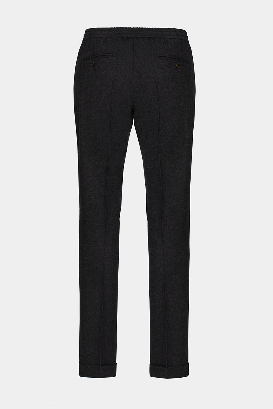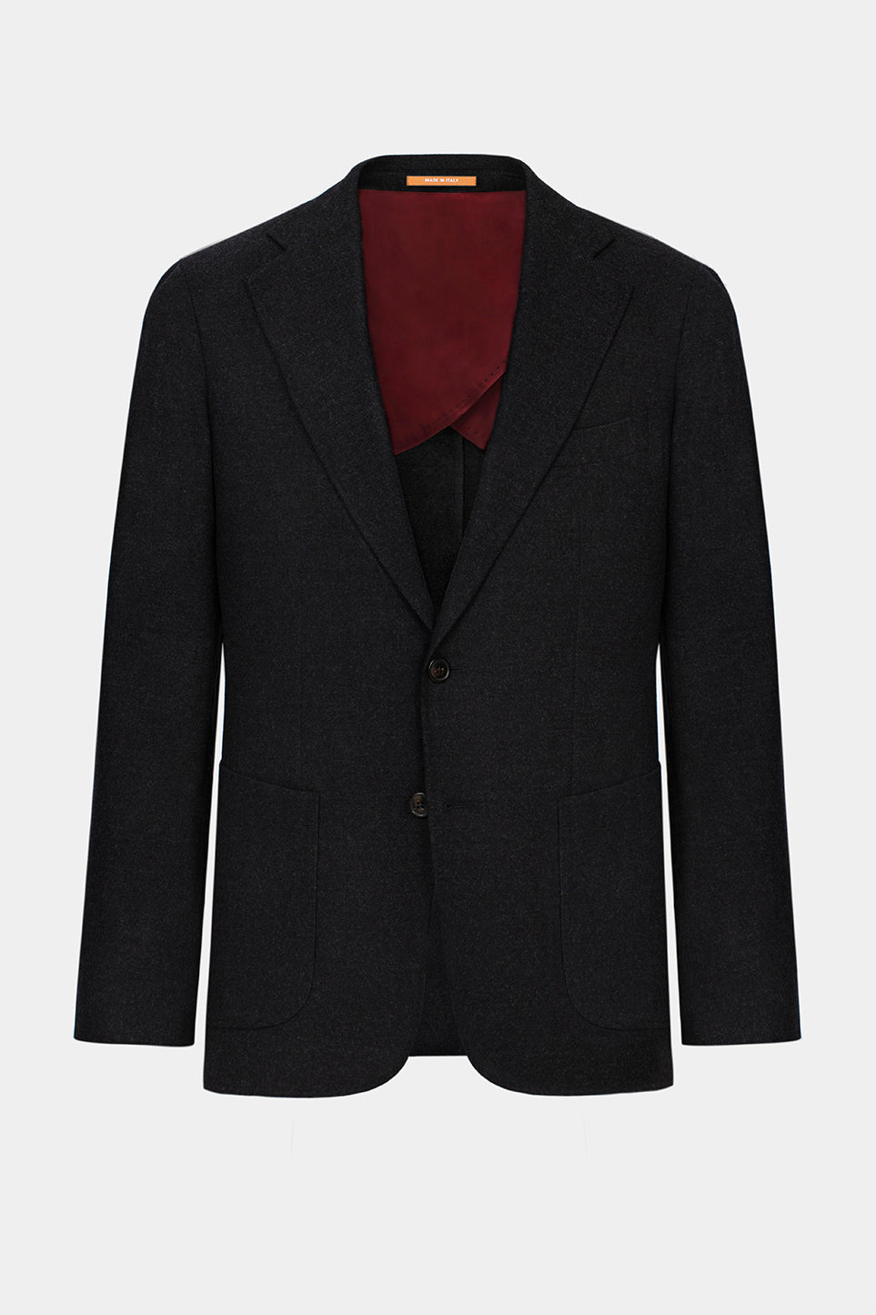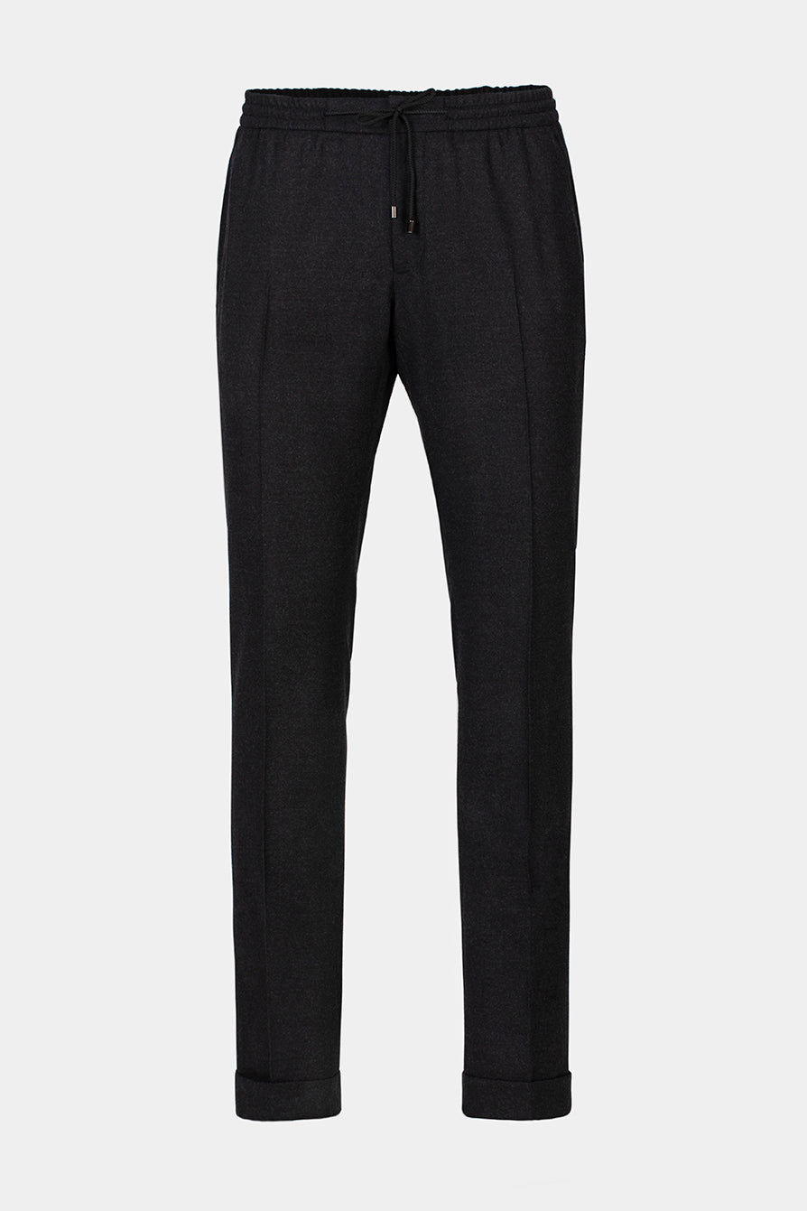 Made with high-speed twisted wool yarns, this suit boasts a bouncy and soft flannel fabric. The timeless jacket design, featuring notch lapels and patch pockets, will have you looking sharp while on the go. The trousers are tailored to a slim fit, with a drawstring closure at the waistband for a contemporary touch and an enhanced comfort.