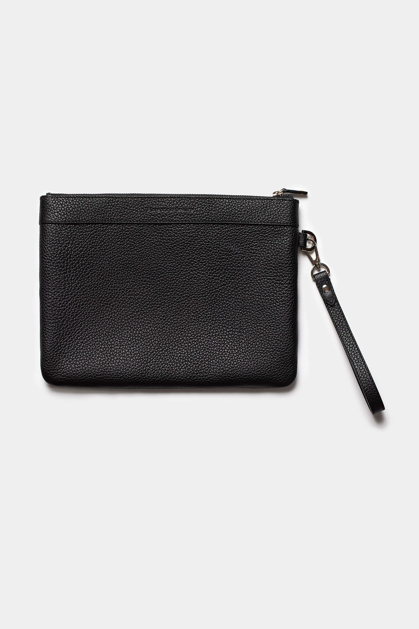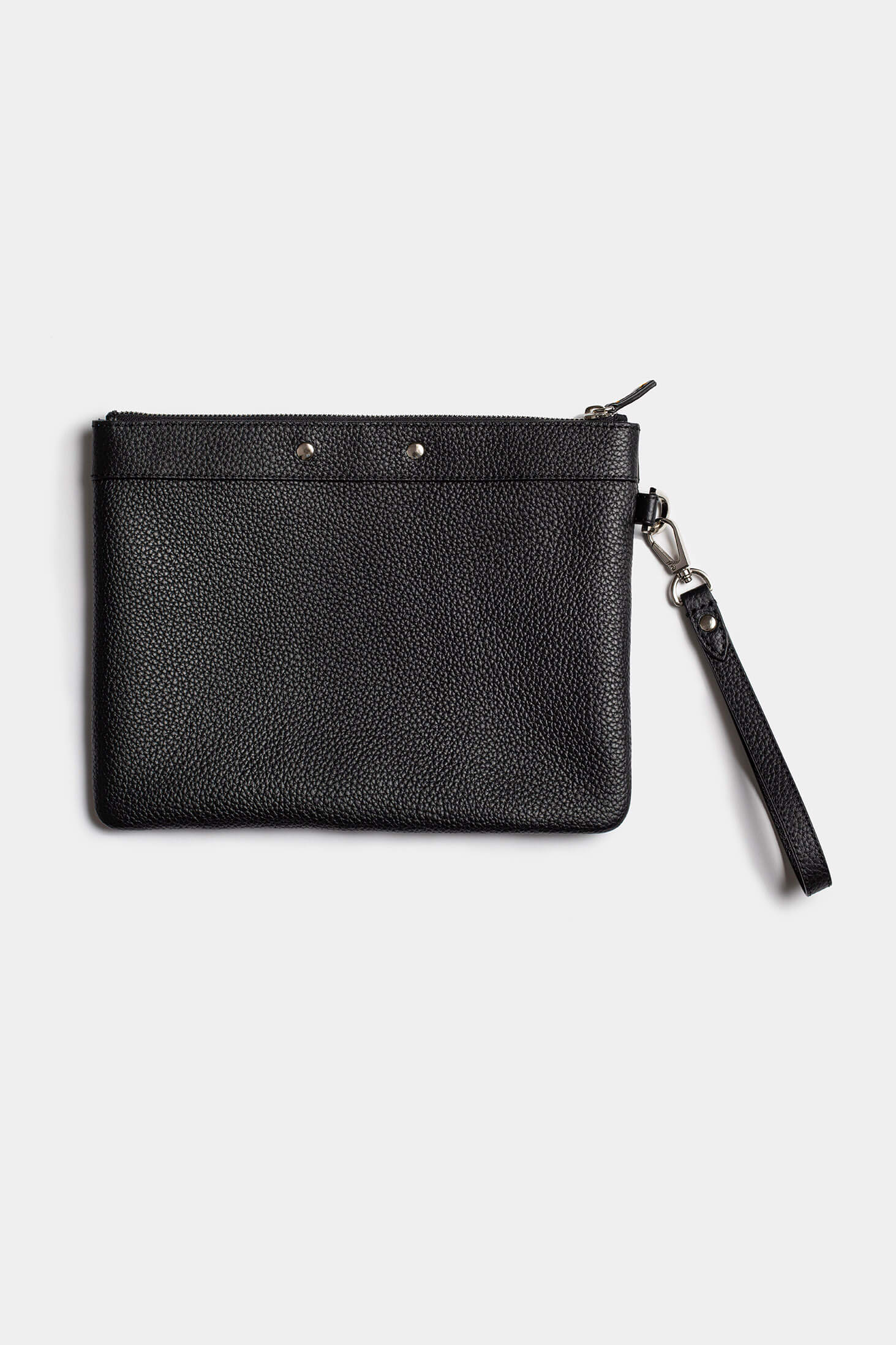 Crafted from premium black leather, this sleek pouch is perfect for carrying essentials with style. Designed for versatility, it seamlessly transitions from day to night. Made in Italy.
