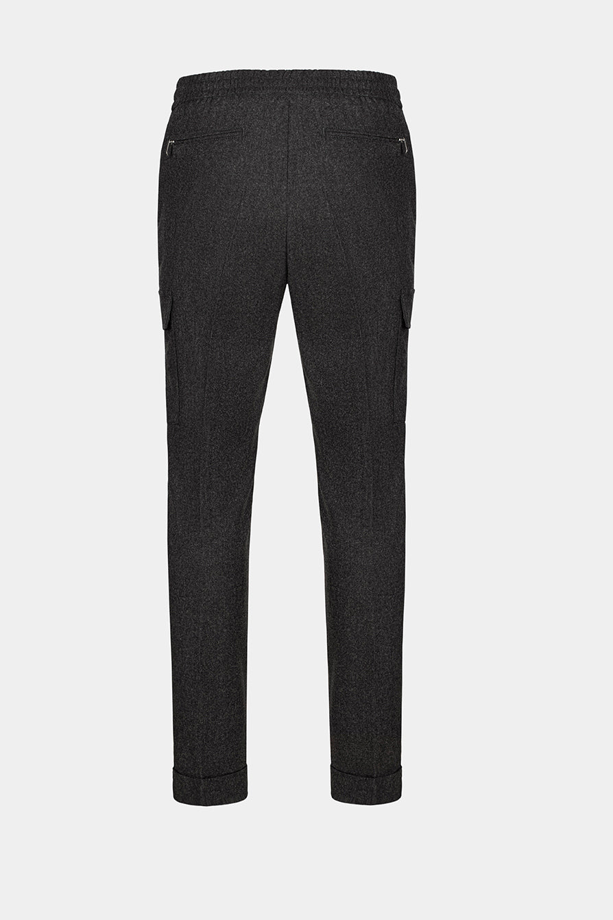 These cargo trousers blend functionality with refined style, crafted from a premium virgin wool and cashmere blend. Featuring external pockets for a modern utility touch, they offer a tailored fit that ensures both comfort and sophistication. A versatile piece designed for effortless elegance. Made in Italy.